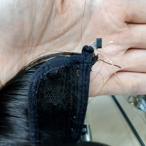 Gewoon de draad over je hoofd plaatsen, trek je eigen haar eroverheen en klaar! Geen clips of lijm nodig.